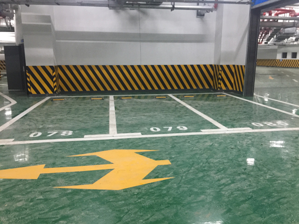 根據(jù)設(shè)計(jì)要求,牛山國際四期汽車泊位379個(gè),其中地上38個(gè),地下341個(gè)。地下室停車位中有209個(gè)機(jī)械停車位,132個(gè)自然停車位。停車位標(biāo)線及指示箭頭等劃線施工參照道路交通標(biāo)線標(biāo)準(zhǔn)、專用標(biāo)線涂料劃設(shè)。為了行車安全,還在坡道轉(zhuǎn)彎處安裝了安全凸鏡以方便觀察對(duì)面車況。