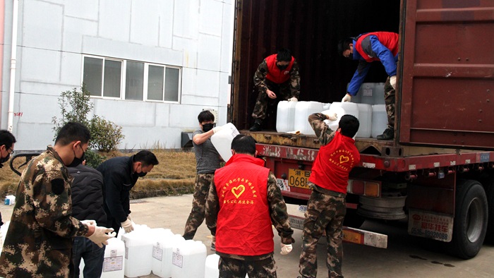 在了解到全市醫(yī)院、水廠等地方急需消毒液等防御物資的情況后,金海公司當(dāng)機立斷及時聯(lián)系溫州市謙成化工有限公司、溫州市恒順化工有限公司、溫州市金山化學(xué)試劑儀器公司等市場入駐經(jīng)營企業(yè),聯(lián)合為全市提供消毒液原料(次氯酸鈉、乙醇)。以謙成為代表的經(jīng)營戶紛紛當(dāng)即表示,經(jīng)營的消毒產(chǎn)品能滿足民用消毒標(biāo)準(zhǔn),愿意無償提供消毒劑給民生所需單位,用以防控新型冠狀病毒感染的肺炎。金海公司更是全力以赴,安排班子成員成立黨員先鋒隊,并不計成本地為有需要的單位開通“綠色通道”運輸。截至目前,累計輸送次氯酸鈉、無水乙醇等抗疫物資60余批50余噸。